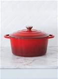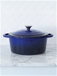 Cook effortlessly on any cooktop, including induction, with this 4.7 L capacity enamelled cast iron casserole available in two striking colours red or blue. Designed for lasting performance, it features a stainless-steel knob for safe handling, basting spikes to keep dishes moist, oven-safe to 350 °C and dishwasher-friendly, it’s the perfect all-in-one solution for hearty, flavourful meals. Specifications: 33 × 26 × 12 cm, 5.1 kg, 4.7 L capacity.