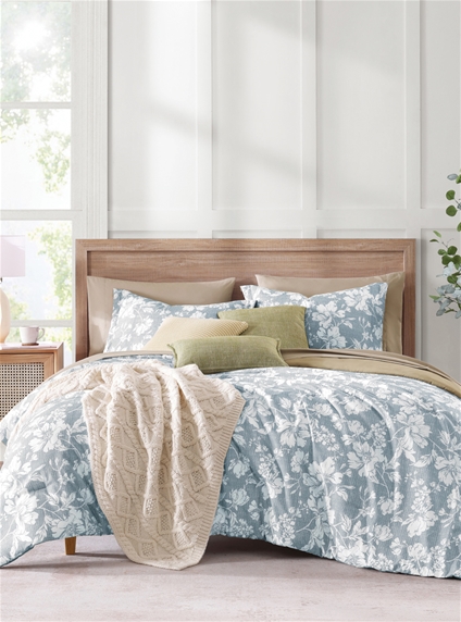 Create tranquil bliss with the Eloise Comforter Set by Odyssey Living. Expertly printed, the Eloise design features a modern bouquet of flowers against a textured print background. The ultimate in sophisticated style. Super soft microfibre, 250gsm quilted filling. Each set includes 2x pillowcases.