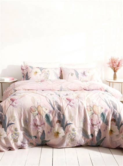 Australian designed water floral placement cotton set with solid inner, includes cover and pillowcases. Cotton.
