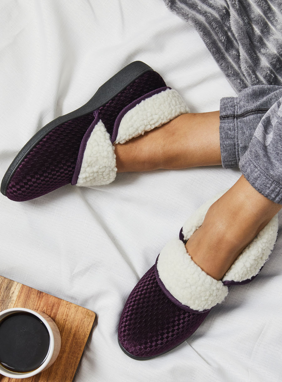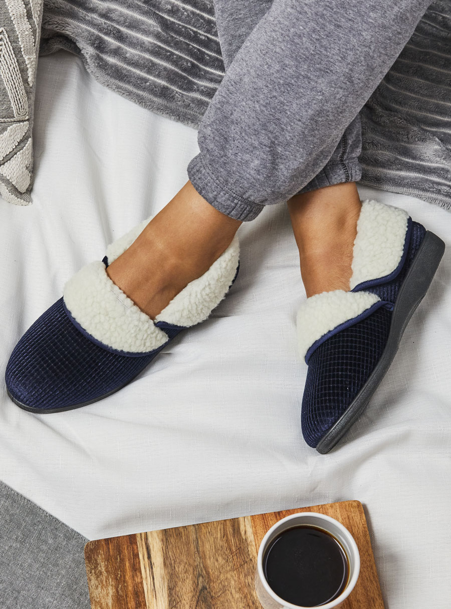 Enjoy ultimate versatility with our Worn 3 Ways Slipper — designed to adapt to your comfort needs throughout the day. Wear the plush sherpa collar up for maximum warmth, fold it down for a relaxed look, or slip them on mule‑style for quick, effortless comfort. The velour synthetic upper adds a soft, stylish finish, while the cosy sherpa lining keeps your feet snug all Winter long. Lightweight, flexible and wonderfully warm — the perfect slipper for every mood and moment. Velour Synthetic Upper and Sherpa Lining.