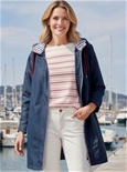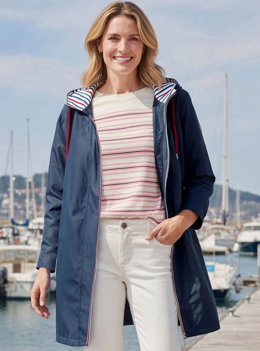 Both stylish and practical this parka will have you ready for any weather. In a lightweight water repellent fabrication, with long sleeves, full zip front, hood with drawstring & two front welt pockets. In fashionable navy with bold red, white & blue accents. 100% Polyester.
