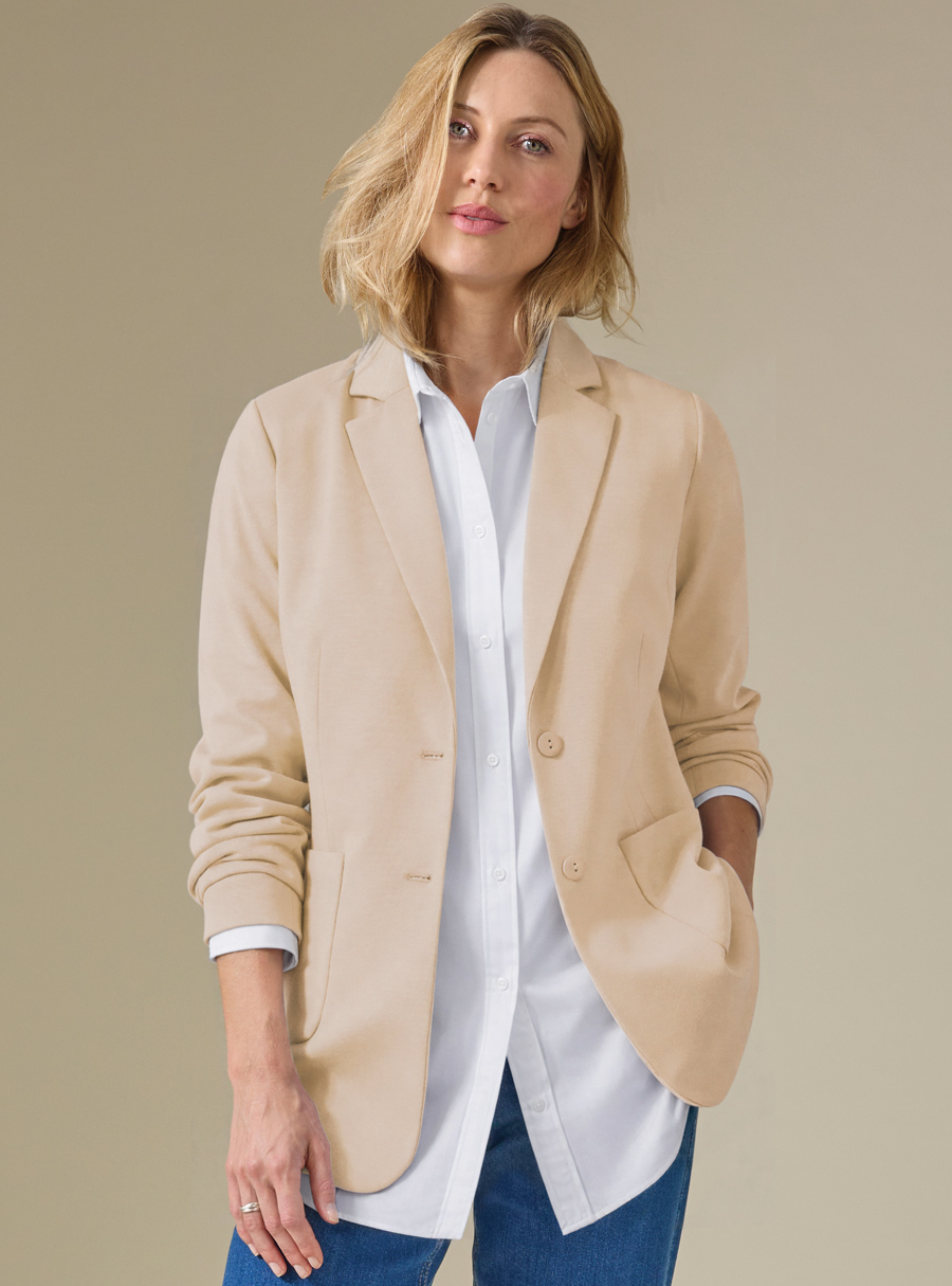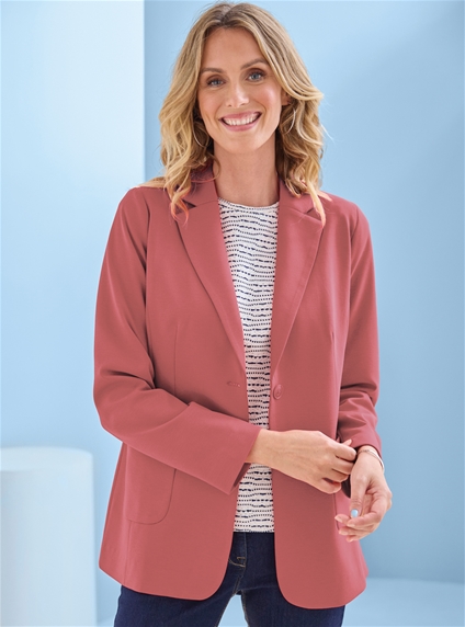 A fully lined two-button blazer in wrinkle-resistant double-knit fabric, featuring patch pockets and a back vent for comfort, fit and easy everyday wear. Main: 78% Polyester, 18% Viscose, 4% Elastane. Lining: 100% Polyester