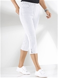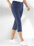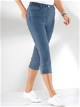 Classic capris with a touch of stretch for the perfect fit. Soft cotton blend keeps you cool and comfortable. Blue Stone Wash: 78% Cotton, 2% Elastane, White: 96% Cotton, 4% Elastane.