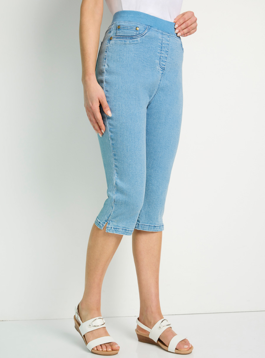 Keep it cool and casual this season with these rib waist capris. In an easy pull on style, these pants have an elasticised waist for comfort and two decorative front pockets. 98% Cotton, 2% Elastane.