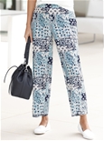 In a trendy culotte style: print pattern trousers in summery woven fabric with a great patchwork print in aqua tones. With a comfortable all-round stretch waistband and shaping darts at the back. Fashionable wide leg, made for comfort. 100% Viscose.