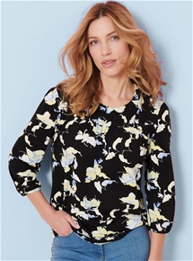 A pretty pull-on floral print dress you'll get so much out of. Flattering shape with a frill trim skirt. Easy to wear and care for. 100% Viscose.