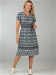 Short sleeve empire line dress. Elasticised back. 100% Viscose.