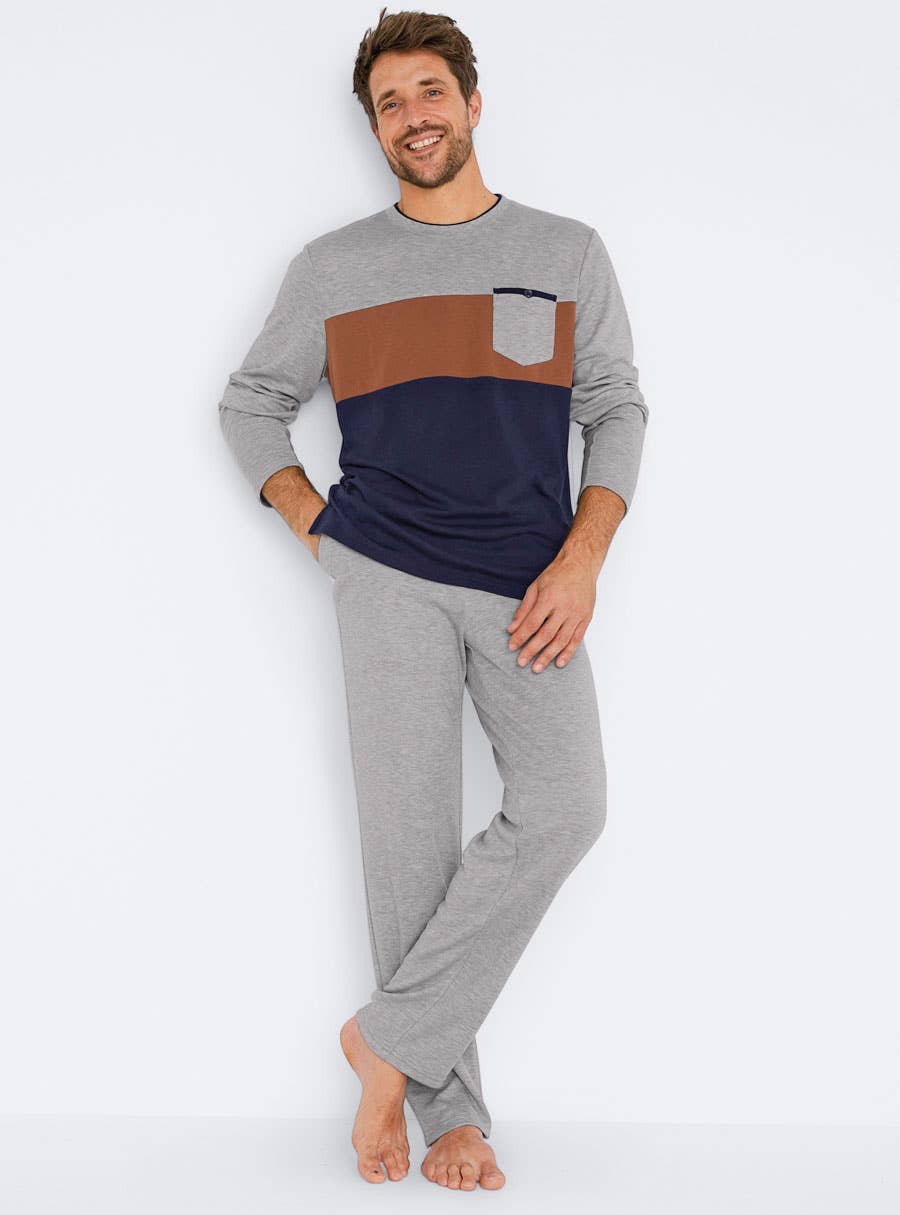Made of 70% recycled polyester, features a chest pocket, elastic waist straight pants with drawstring and two welt pockets. Polyester, Viscose.