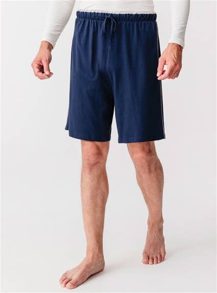 All year round shorts with contrasting piping details. Back patch pocket. Elasticated waistband and drawstrings. Cotton, Viscose.