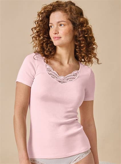 A warm, supple and soft interlock knit perfect as outerwear or underwear. Finished with attractive lace trim. Machine washable. 50% Acrylic, 50% Polyester. Grade 3.