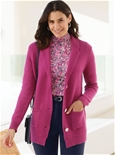 This fluffy, soft cardigan with a horizontal ribbed pattern at the front is a great substitute for a blazer. Lapel collar, button placket and 2 practical pockets. The cuffs of the long sleeves and the hem are ribbed. Knitted to a high quality fit. 50% Viscose, 28% Polyester, 22% Polyamide.