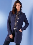 Cardigan with a striking cable-knit pattern. Ribbed button placket with horn-look buttons. Cleverly placed pockets. Particularly dimensionally stable ribbed trims. 75% Acrylic, 15% Wool, 10% Polyamide.