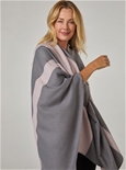 Stripe shawl with matching self loop for an elegant, secure draped finish.