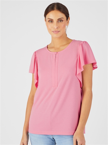 Soft, feminine and effortlessly chic. This lightweight top features graceful butterfly sleeves and a comfortable stretch blend of polyester, viscose and elastane. Perfect for dressing up or down. 70% Polyester, 27% Viscose, 3% Elastane.